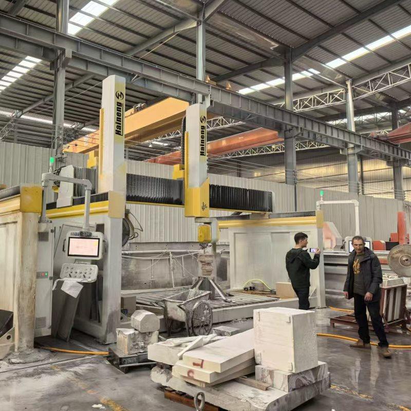 6 Axis cnc machining center is compatible with the conventional plate cutting function profiling processing, waterscape, garden shaped processing, high-end villa Roman column head,Fried Dough Twists column and various kinds of stone processing with complex shapes.