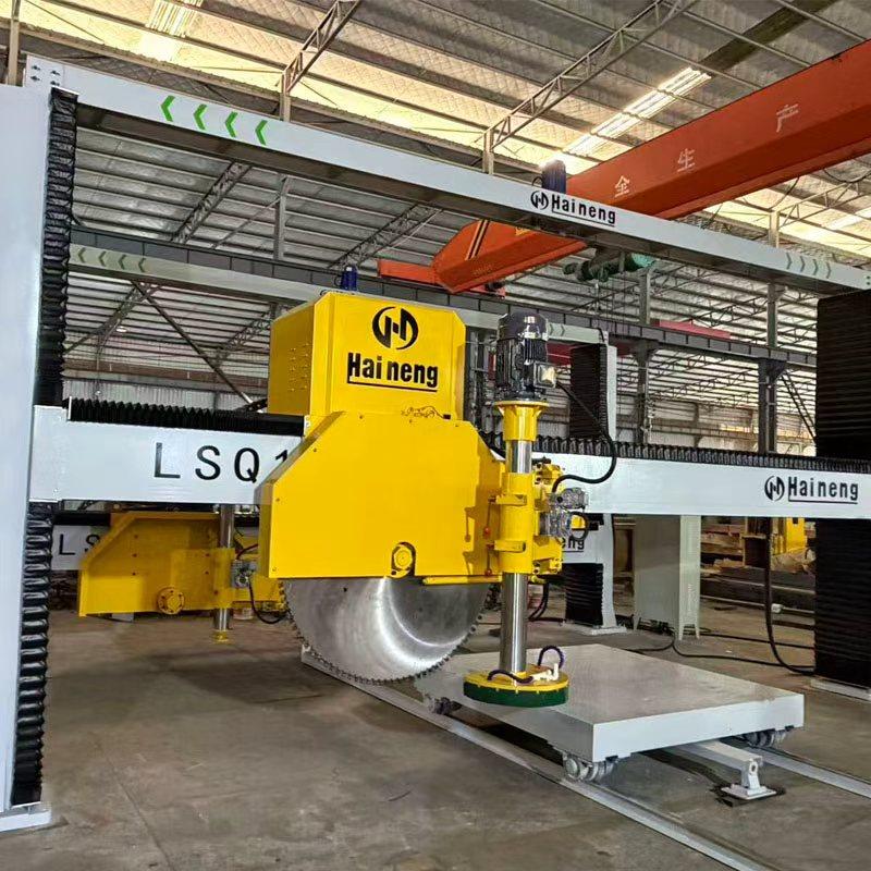 Full casting beam structure, the horizontal disk adopts hydraulic feeding, which can directly carry out the cutting of the root of the stone when cutting, eliminating the need for manual unloading of the slab.